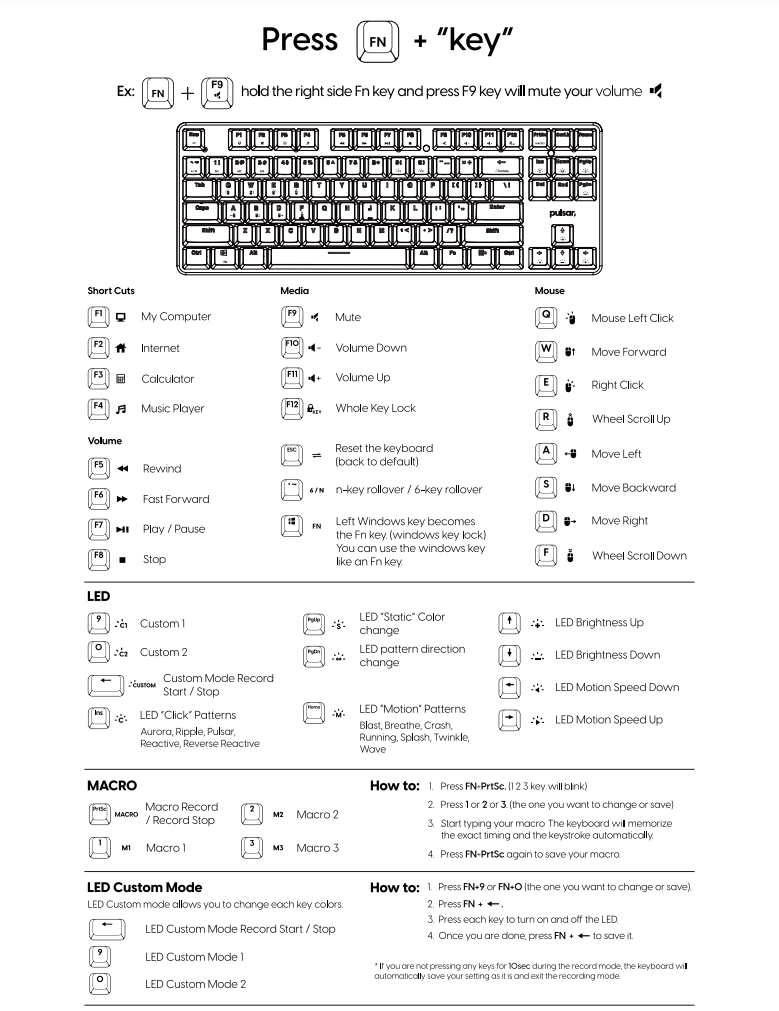 You can do pretty much the same customization as the software using FN+"XX" key shortcuts.